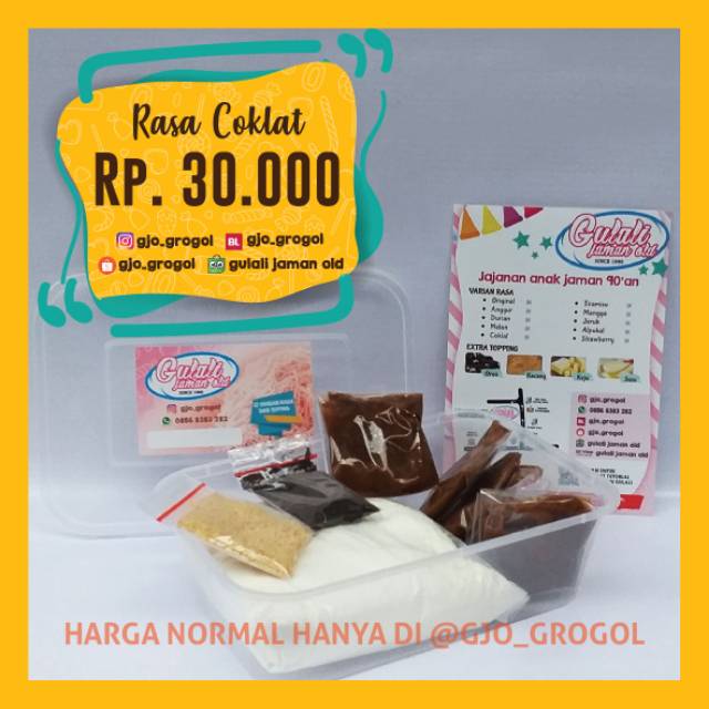 Tiap pcs gulali @20gr (standar untuk 1 kali makan), tepung kurang lebih 200gr.