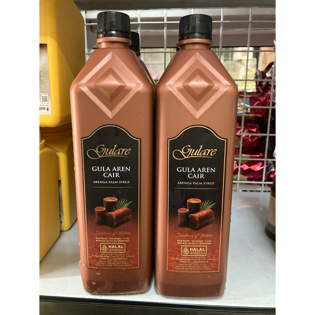Gulare Gula Aren Cair ini merupakan bahan pemanis alami yang terbuat nira aren, yaitu cairan yang berasal dari tandan bunga jantan pohon kelapa. Rasanya manis dan tidak membekas di tenggorokan karena menggunakan nira asli sebagai kandungan utamanya.