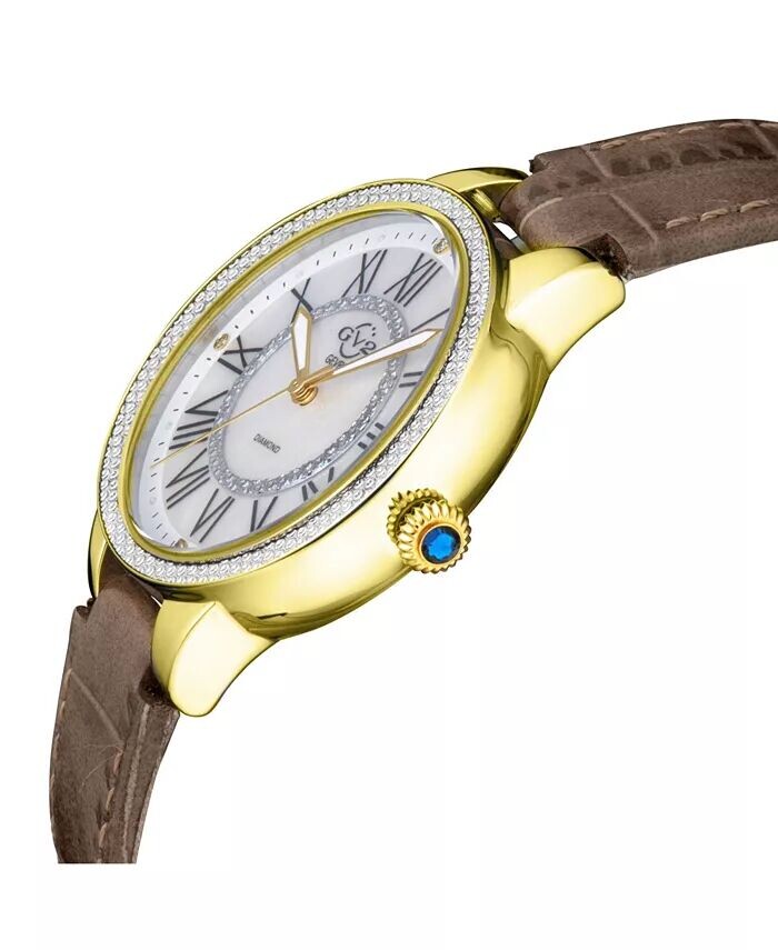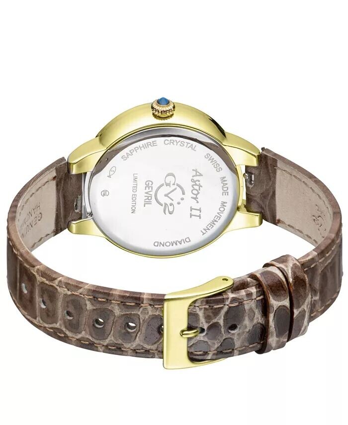 GV2 Женские часы Astor II из коричневой кожи со швейцарским кварцевым ремешком, 36 мм Gevril, желтый