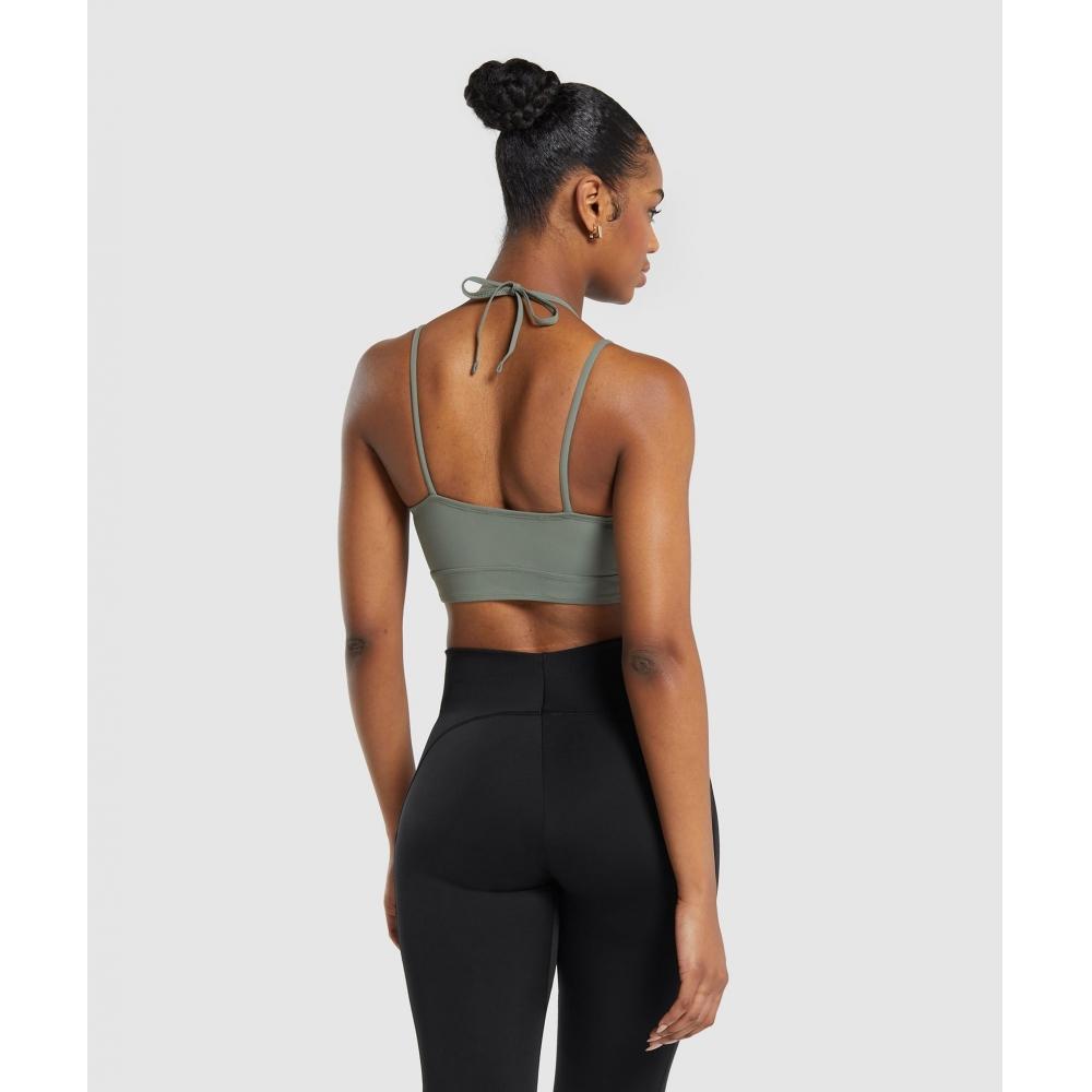 GYMSHARK Укороченная майка с воротником-халтершейком, зеленая B7A1A ECJF S