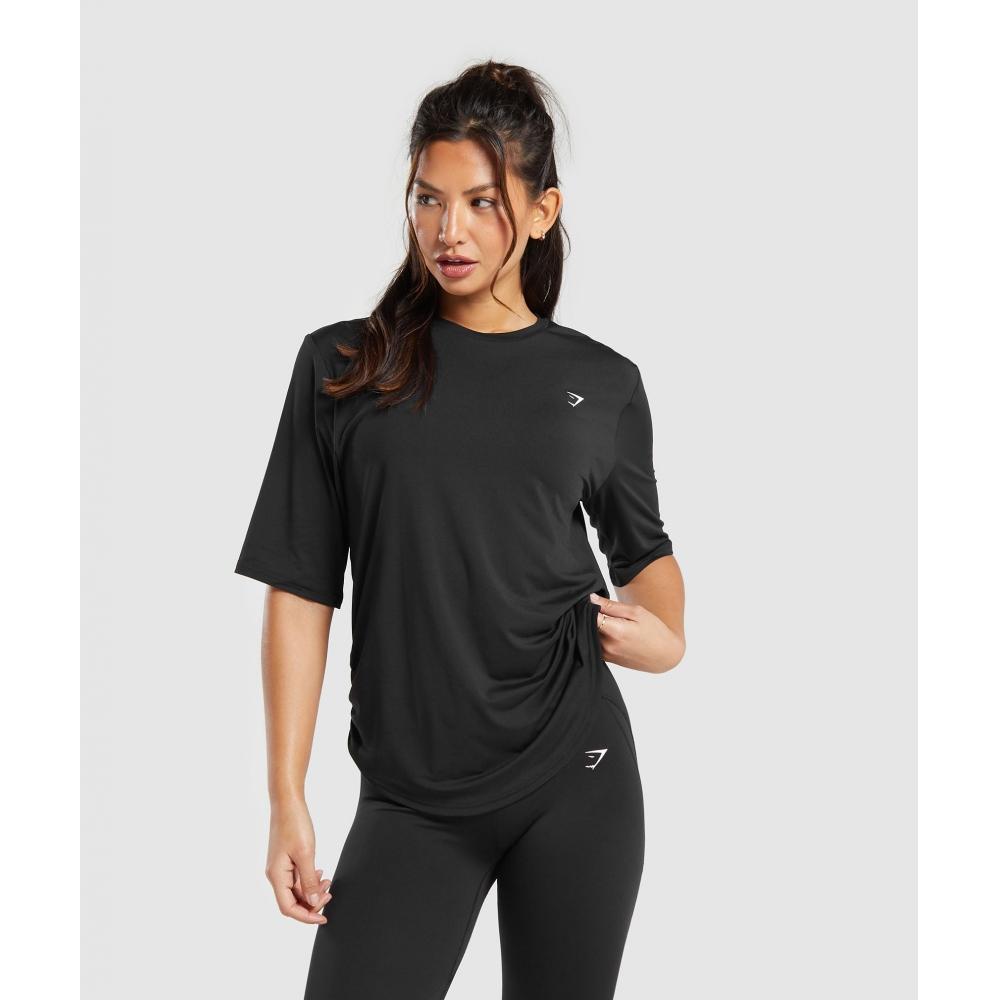 GYMSHARK Oversized-футболка со сборками, черная B7A2E BB2J XXS