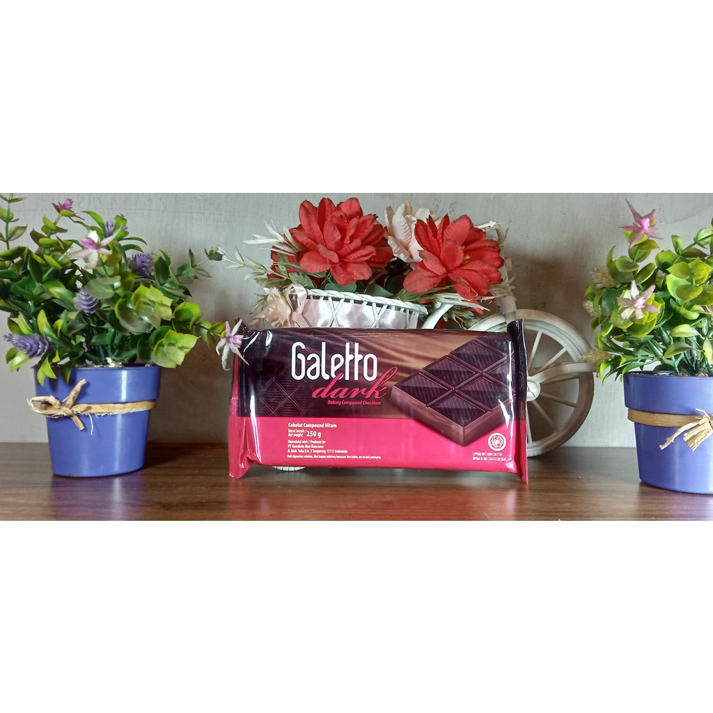 Galetto Dark Chocolate Compund Chocolate merupakan cokelat masak yang siap di olah ataupun di makan secara langsung bisa di aplikasikan untuk hiasan kue, isian roti roti, aneka topping dengan cara di cetak ataupun diserut sesuai selera yang anda inginkan.