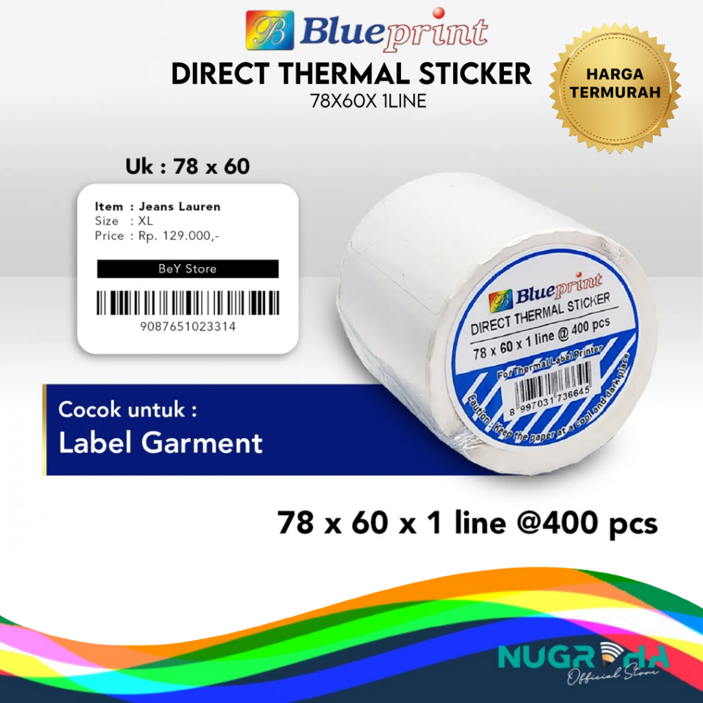 Gambar Direct Thermal Sticker Label BLUEPRINT 78x60 mm 1 Line Isi 400 pcs