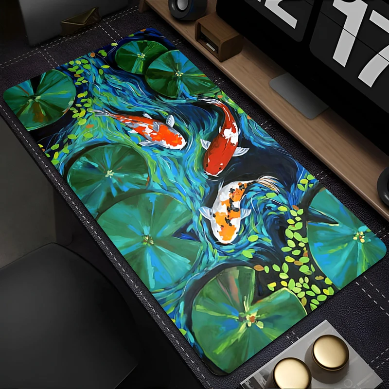 Gaming Mouse Pad with Stitched Edge Non-Slip Rubber Base Koi Fish Extended Desk Mat Keyboard Mousepad for Office Home Computer