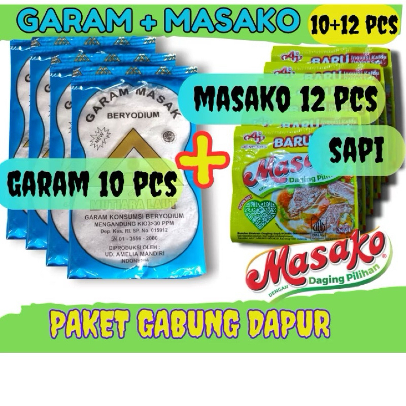 Garam 10 Pcs + Kaldu Rasa Sapi Masako 1 Renceng Isi 12 Sachet