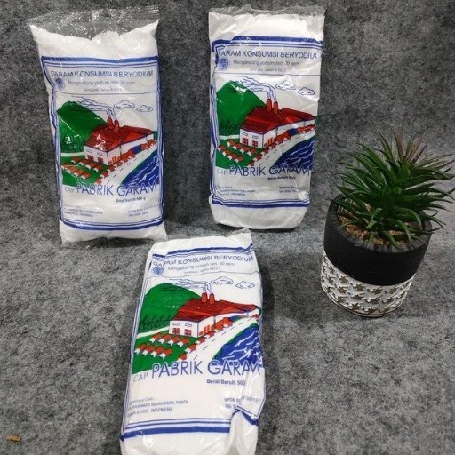 Cap Pabrik Garam Garam Konsumsi Beryodium merupakan garam konsumsi dengan kandungan beryodium yang dibuat dengan food grade standar Internasional. Diproses secara kristalisasi dengan mesin modern berteknologi tinggi sehingga sehat untuk dikonsumsi karena kotorannya lebih sedikit serta dapat digunakan untuk memasak atau ditaburkan pada makanan.