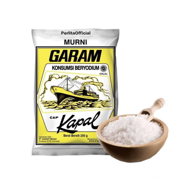 Garam konsumsi beryodium Cap kapal , untuk menambah rasa asin pada semua hidangan masakan