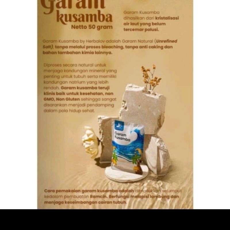 garam yang dibuat tanpa melalui proses bleaching, tanpa anti caking, dan bahan tambahan kimia lainnya.garam kusamba teruji klinis baik untuk kesehatan non GMO, non gluten sehingga sangat disarankan menjadi pendamping dalam pola hidup sehat.