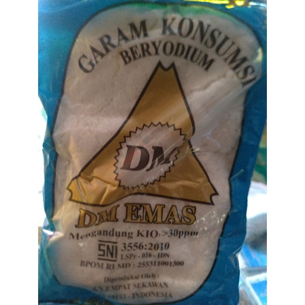 Garam Masak bermutu tinggi, diolah dengan teknik termodern. bebas dari semua kotoran, kadar kimia dan rasa pahit yang dapat menggangu kesehatan. GARAM KONSUMSI BERYODIUM CAP DM EMAS dapat meningkatkan kecerdasan, kegairahan dan, pertumbuhan anak, mencegah penyakit GONDOK, KRETIN ( Keterbelakangan mental dan kecerdasan, kelahiran cacat, kerdil, cacat otak, ketidakseimbangan syaraf, tuli, bisu, hypothyroidisme).