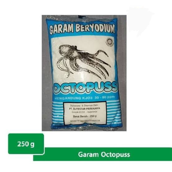Garam Beryodium OCTOPUSS sangat baik untuk digunakan sebagai pelengkap masakan Anda sehari-hari. Garam Beryodium merupakan garam yang digunakan sebagai garam konsumsi harus memenuhi Standar Nasional Indonesia (SNI) antara lain mengandung yodium sebesar 30-80 ppm. Penggunaan garam beryodium sangat penting bagi kesehatan terutama kesehatan keluarga. Iodium bermanfaat untuk memicu pertumbuhan otak, menyehatkan kelenjar tiroid, menyehatkan proses tumbuh kembang janin, mencerdaskan otak. Kekurangan iodium mengakibatkan penyakit gondok, keterbelakangan mental, bayi lahir cacat, anak kurang cerdas, keguguran pada ibu hamil, dan lain-lain.