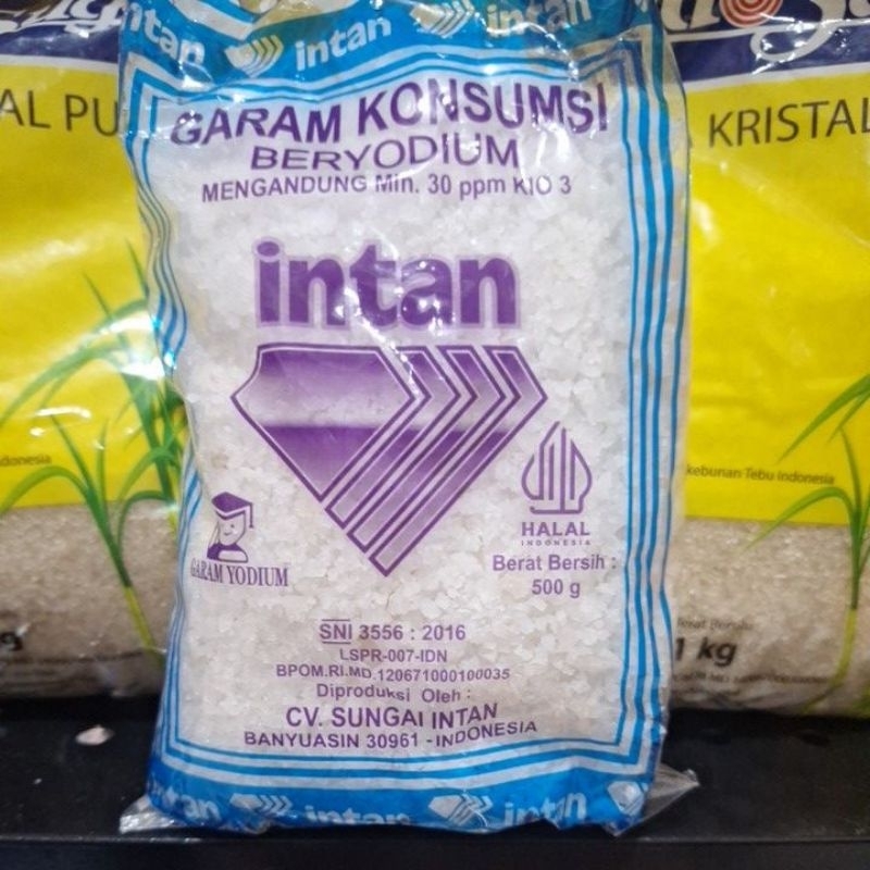 Garam Kasar cap Garuda Mas Beryodium 500gr. Garam kasar beryodium merek Intan. Kemas 500gr.