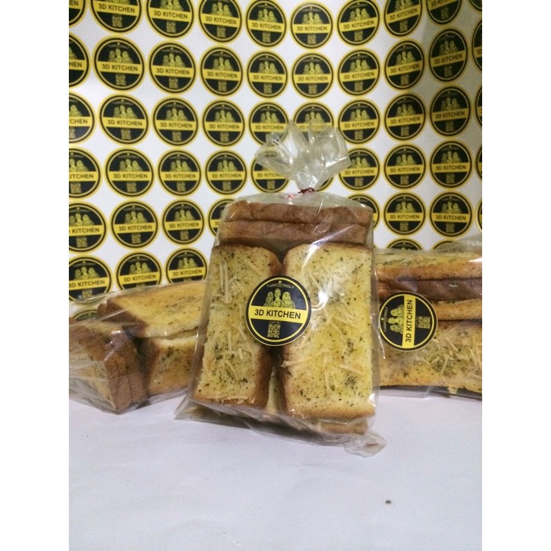 Garlic Cheese Bread, roti kering yg dibumbuhi dg butter dan bawang, parsley, keju, enak banget, gurih, cocok buat teman minum teh, kopi atau susu, cocok dimakan kapan saja, 1 paket isi 12 keping