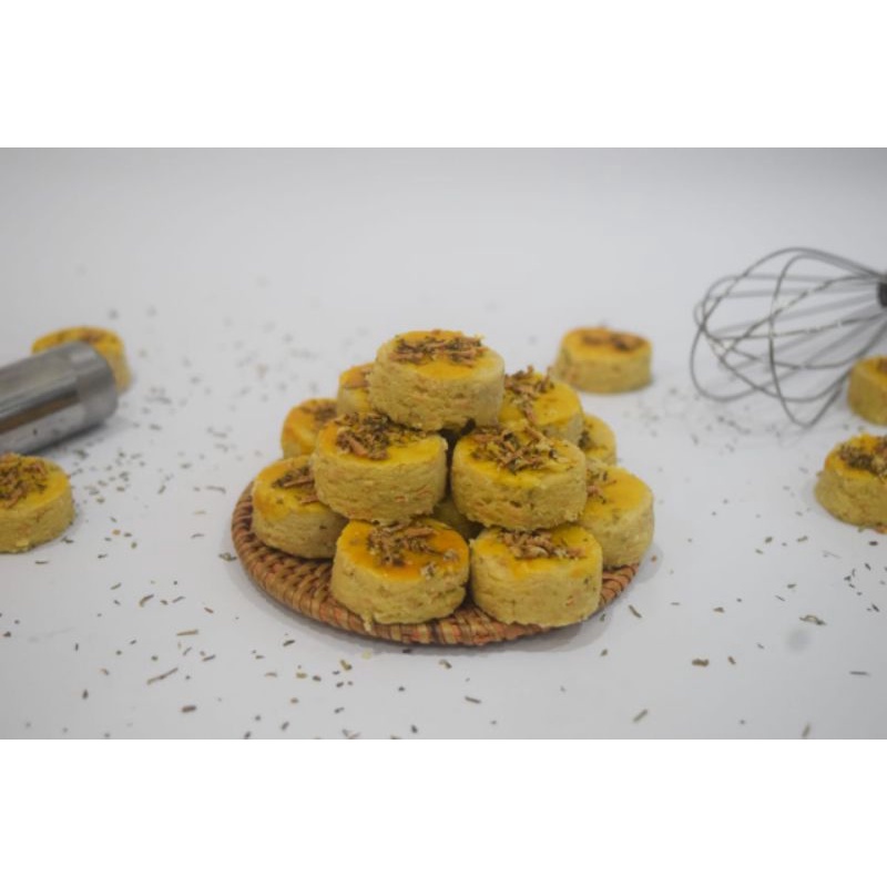 Kue kering dengan rasa gurih dari garlic dan keju edam, dengan aroma yang khas dari parsley dan oregano.