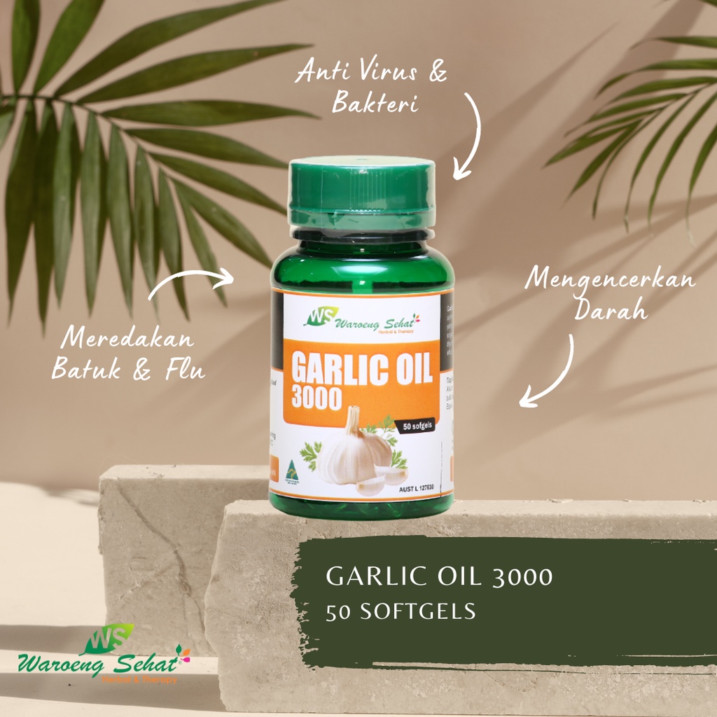 Garlic Oil 3000 mengandung konsentrat alami minyak bawang putih setara dengan bawang putih segar 3000mg, secara tradisionel diinginkan dalam pengobatan.