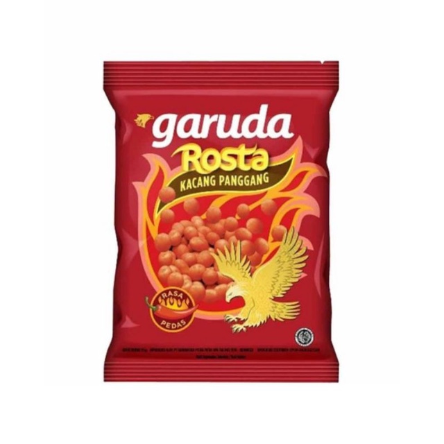 Garuda Rosta Kacang Pedas Rasa Pedas 70 gr merupakan kacang panggang yang renyah dan pedas hingga ke butir kacang terakhir. Rasanya dijamin membuat ketagihan. Cocok sebagai camilan yang dapat dinikmati bersama teman dan keluarga.
