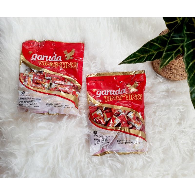 Permen Enting Enting Kacang, Produksi PT Garuda Food. “Ting-Ting bukan permen, Ting-Ting bukan biskuit.” Pernah dengar? Enting-entingsesungguhnya telah diciptakan sejak lama, di sebuah kelenteng, di Kota Salatiga, Jawa Tengah. Tekstur makanan yang satu ini memang menyerupai kukis. Namun di sisi lain, lapisan manis pada permukaannya memungkinkan Anda untuk menyesapnya seperti permen. Bisa dibilang enting-enting itu bentuknya menyerupai nougat. Ting Ting Garuda merupakan produk olahan makanan tradisional dikemas secara lbh modern. Dijual per bungkus, 1 bks berisi 50 pcs.