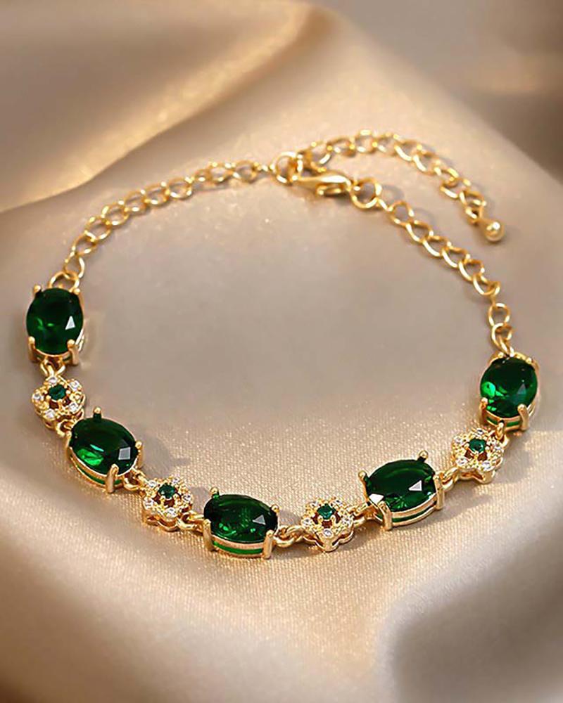 Gem Stone Rhinestone Floral Pattern Bracelet, Green