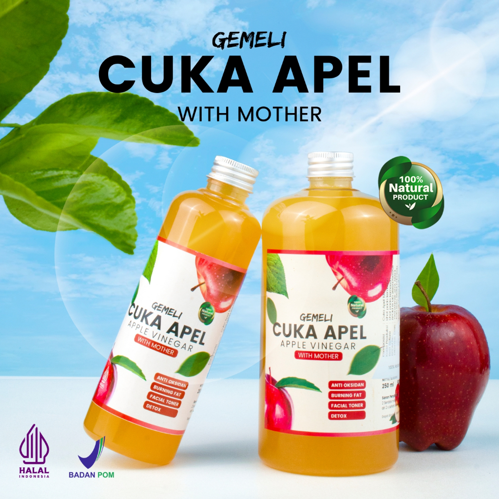 Cuka Apel atau Apple Cider Vinegar dibuat dari sari buah apel yang telah mengalami fermentasi untuk membentuk probiotik dan enzim yang sangat baik untuk kesehatan tubuh dan kulit.