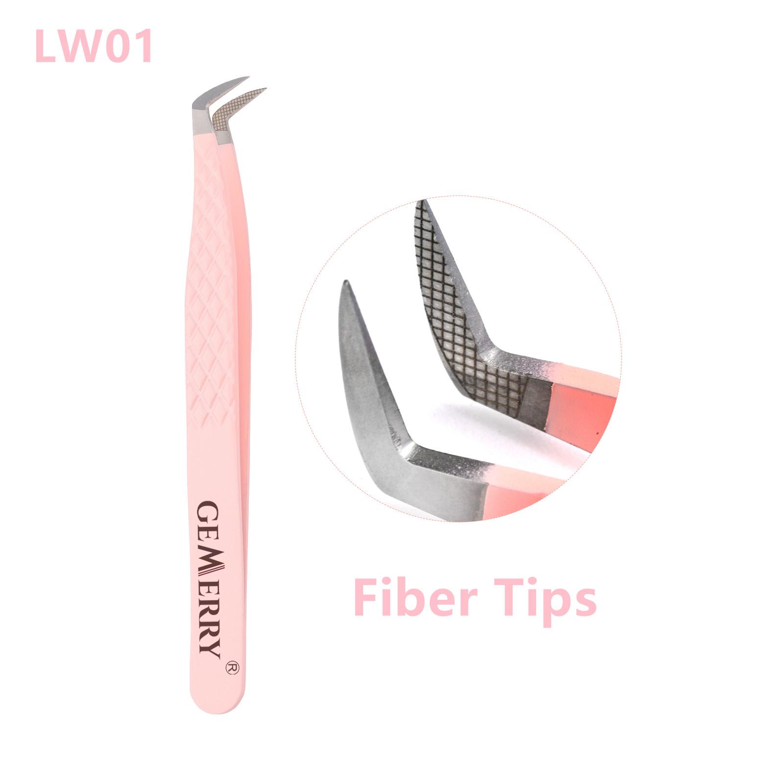 Gemerry 1 шт. Пинцет для ресниц с волоконными наконечниками, розовый, профессиональный, стальной, высокой точности для объемных ресниц, наращивания, макияжа