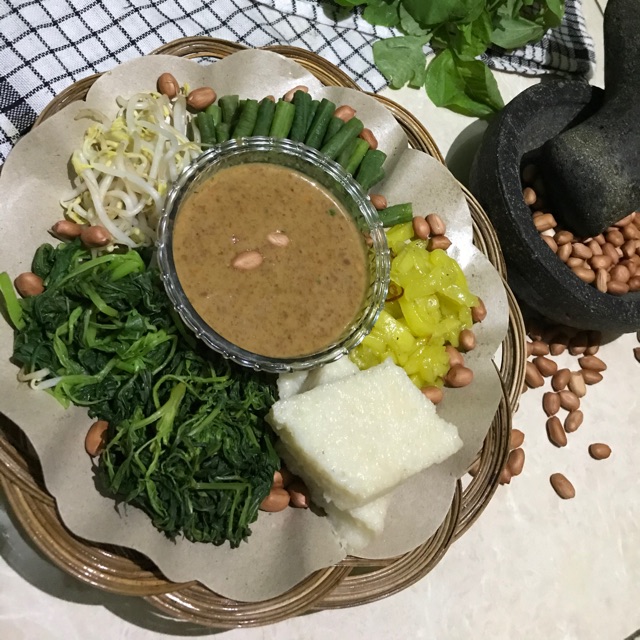 Terdiri dari isi pecel (bayam,cipir,daun keningkir, touge, kacang panjang,mie pethel (homemade khas wonogiri),gendar)
