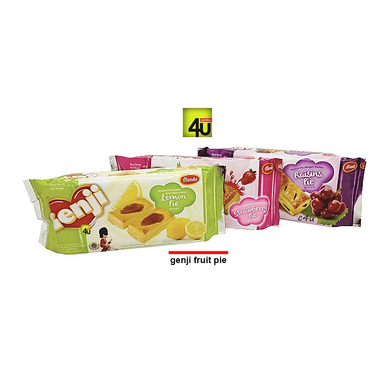Biskuit legendaris versi Monde, sejenis puff pastry yg renyah dan lembut. Bertekstur sepotong biskuit dgn puff berlapis dgn adonan khas yg sangat enak dan ringan. Adalah Genji Fruit Pie, pie puff pastry salut selai buah lembut di atasnya. Produksi PT. Jadi Abadi Corak Biscuit Factory Indonesia - Surabaya, atau tenar dgn nama Jacobis. Salah satu grup Khong-Guan-Nissin-Monde di Indonesia yg terkenal akan kelezatan produknya. Genji Fruit Pie jacobis ini mempunyai tekstur yg sangat baik, renyah dan empuk dgn olesan selai buah dan manisan raisin yg enak. Dikemas dalam pack kecil bernetto 85 gr. Beratribut lengkap BPOM RI dan Halal MUI. Silahkan di order :)