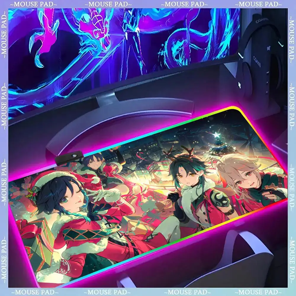 Genshin Impact Arlecchino Mouse Pad Gamer Luminescence Led Mouse Pad Gaming Table Rgb Deskmat Keyboard Pc Mousepad