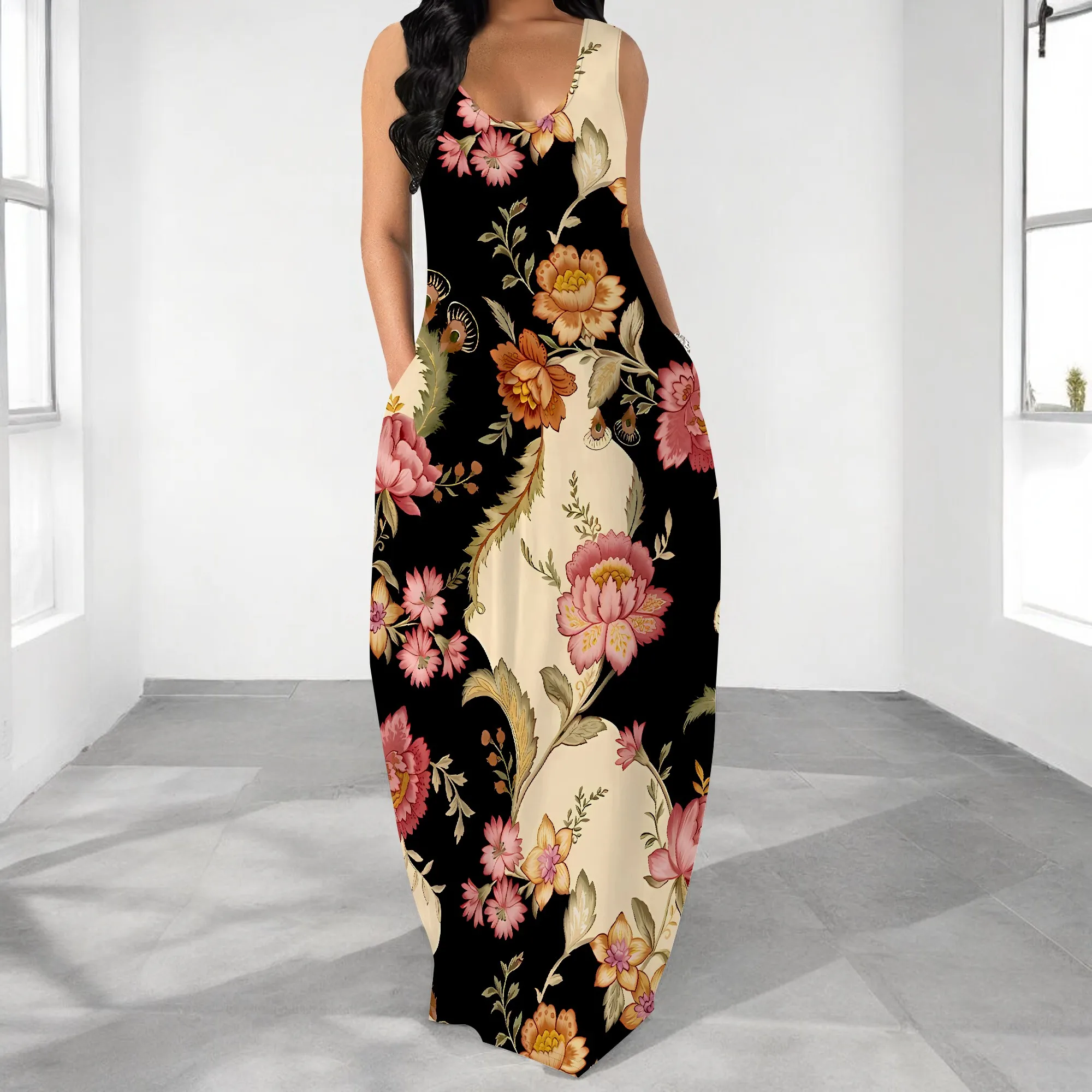 Retro Floral Sleeveless Maxi Dress Plus Size Casual Elegant Summer Dress for Women Vintage Print