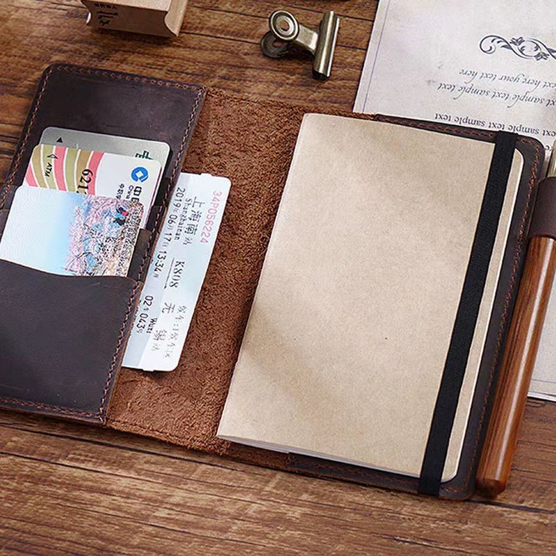 Genuine Leather Cover Notebook Pocket Journal Travel Field Book With Pen Folder Rope Design