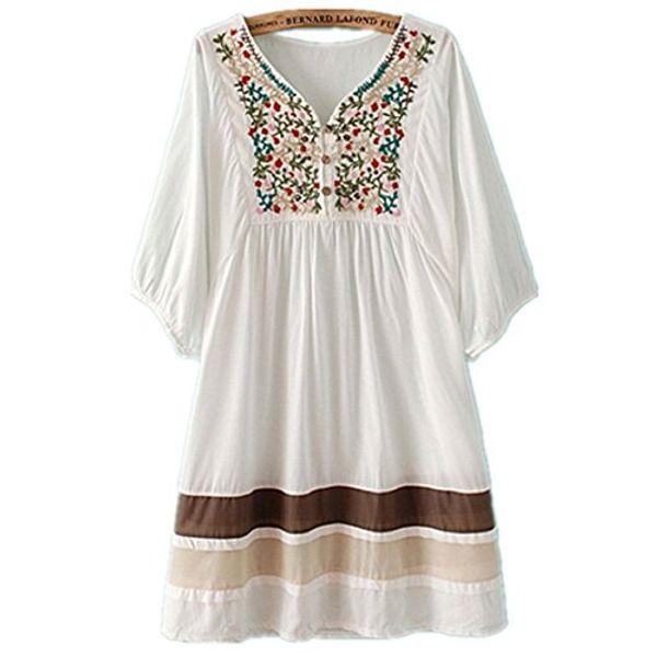 asher fashion women's tunic v neck embroidered peasant bohemian dress, Black;gray