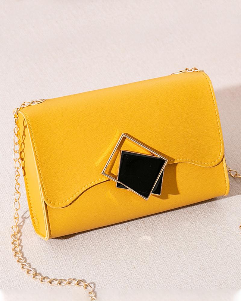Geo Lock Chain Strap Flap Shoulder Bag, Yellow