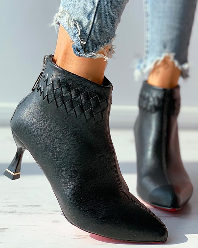 Geo Pattern Close Toe Pyramid Heel Boots, Black