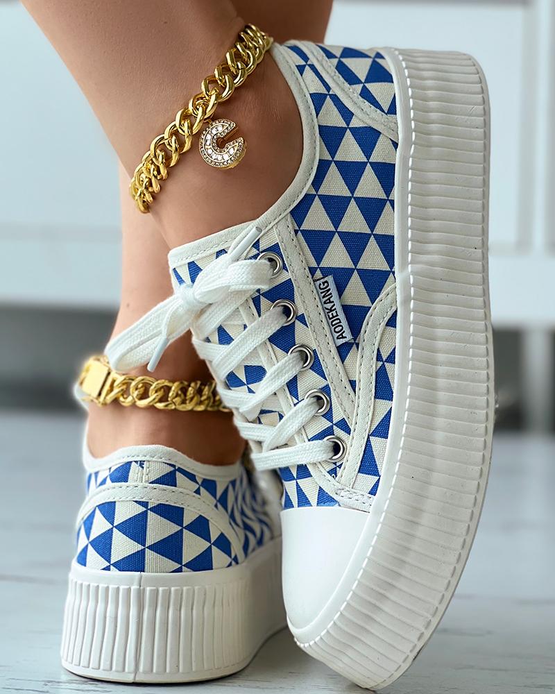 Geo Pattern Platform Canvas Shoes, Blue
