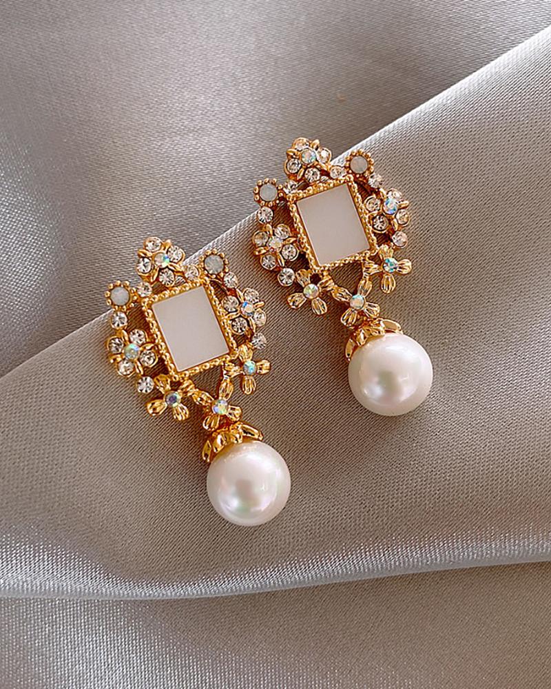 Geo Pattern Studded Beaded Drop Earrings, Gold