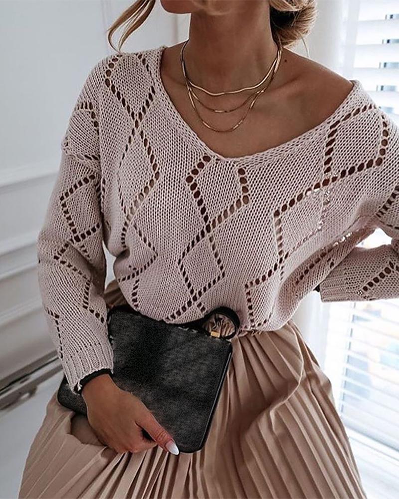 Geometric Pattern Hollow Out Knit Sweater, Light pink