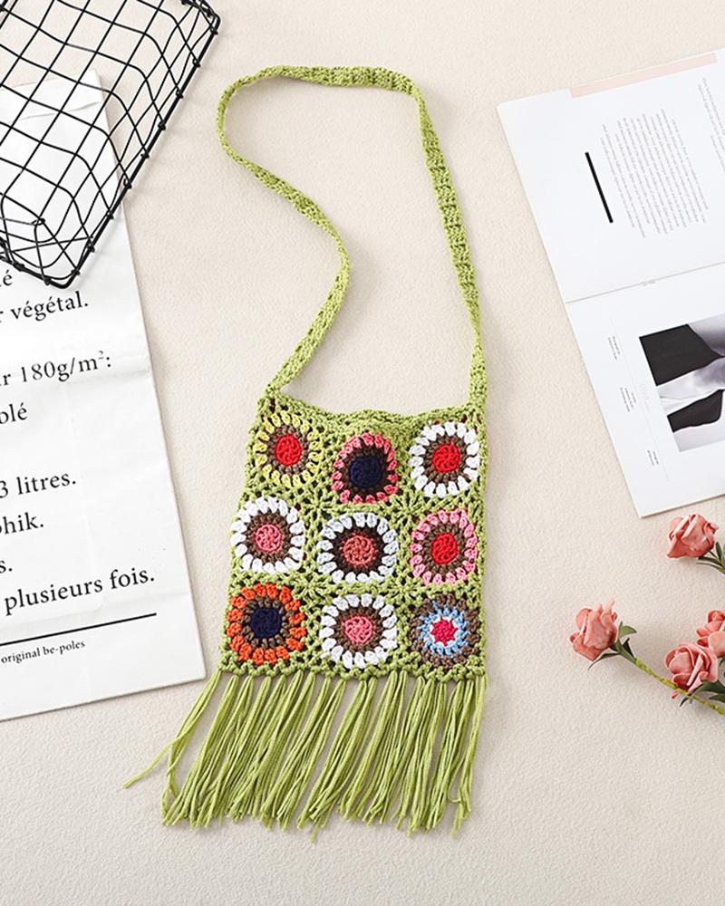 Geometric Pattern Tassel Design Crochet Shoulder Bag, Green