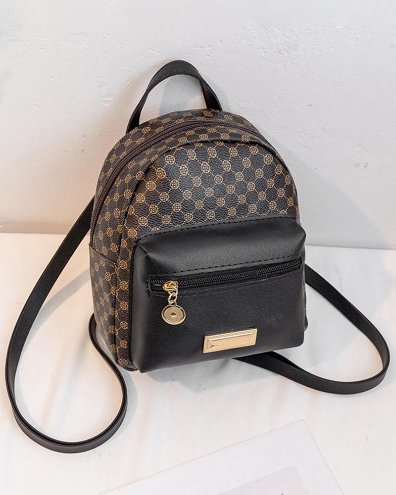 Geometric Print Zipper Design Backpack, Black