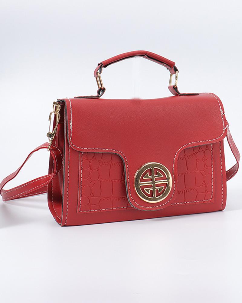 Geometric Quilted Flap Magnetic Satchel Bag, Red
