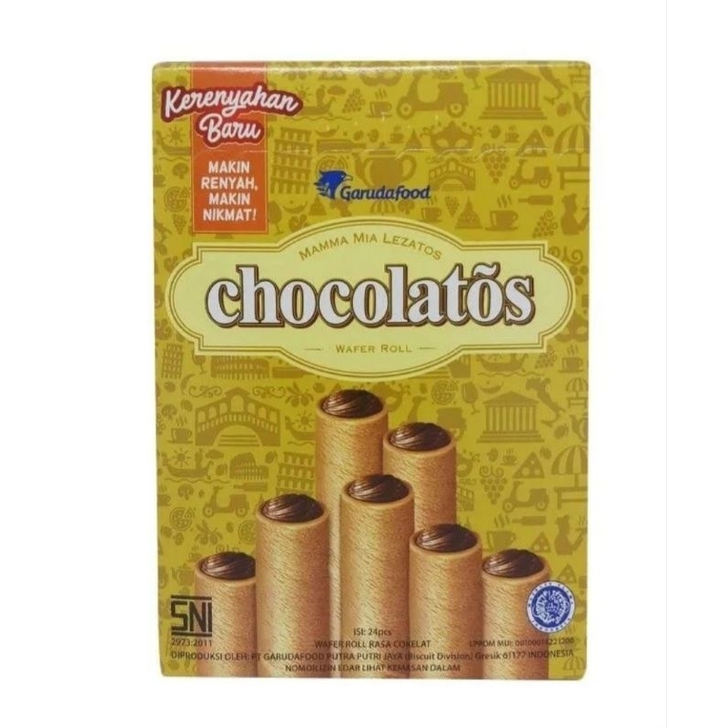 Gery chocolatos wafer roll merupakan wafer coklat stick yang renyah dan krim coklat yang padat dengan cita rasa khas italianya. Sehingga menjadi makanan ringan yang di gemari.