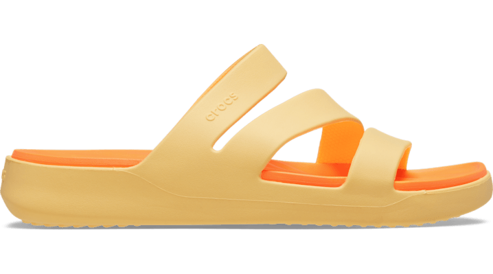 The Crocs Getaway Collection with new Free Feel Technology™ introduces our most seamless comfort innovation yet. The soft, flexible Free Feel Technology™ upper feels like nothing at all, floating on top of your foot and moving with you without restriction. With a variety of heights and stylish silhouettes, you will have a sandal for every occasion and all your getaways! Once you step in, you will never want to take them off. Getaway Strappy Details: Roomy fit. Straps may be loose on narrow feet. SOFT Supremely smooth straps SEAMLESS Unrestricted comfort LIGHTWEIGHT Impossibly light for all-day wear FLEXIBLE Moves with you and your every step Sink-in soft Croslite™ footbed “Feels like Nothing At All” Free Feel Technology™ Upper Platform height of 1.3 inches 35mm 3.5cm