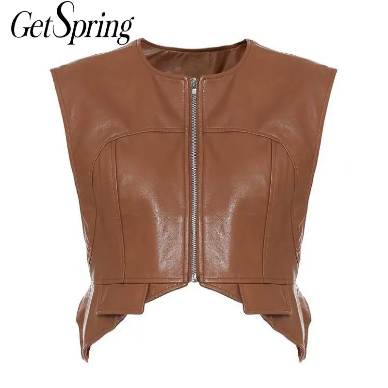 Getspring, женский жилет, асимметричный женский жилет из искусственной кожи, Зимний короткий жилет цвета хаки, темно-серого цвета, Женский винта...