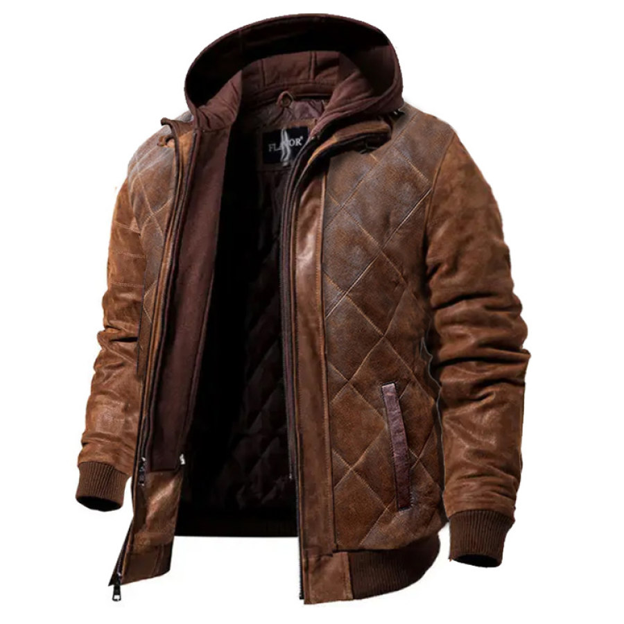Giacca Con Cappuccio In Pelle Da Moto Da Uomo Resistente Al Freddo Per Esterni