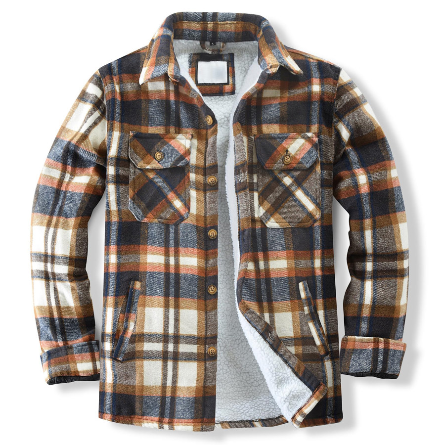 cappotti e giacche,giacca da uomo in flanella di cotone giacca scozzese a maniche lunghe foderata in pile
