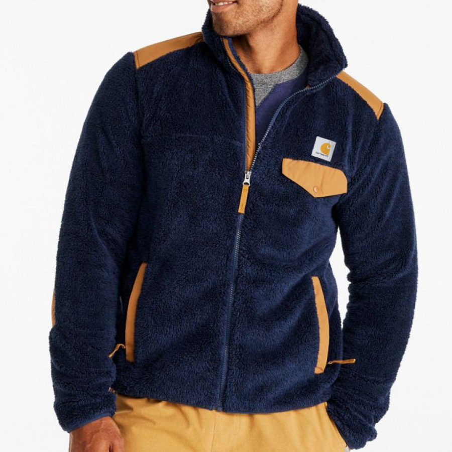 Giacca Da Uomo In Pile Con Zip Intera Caldo Pannello Colorblock Capispalla Da Esterno