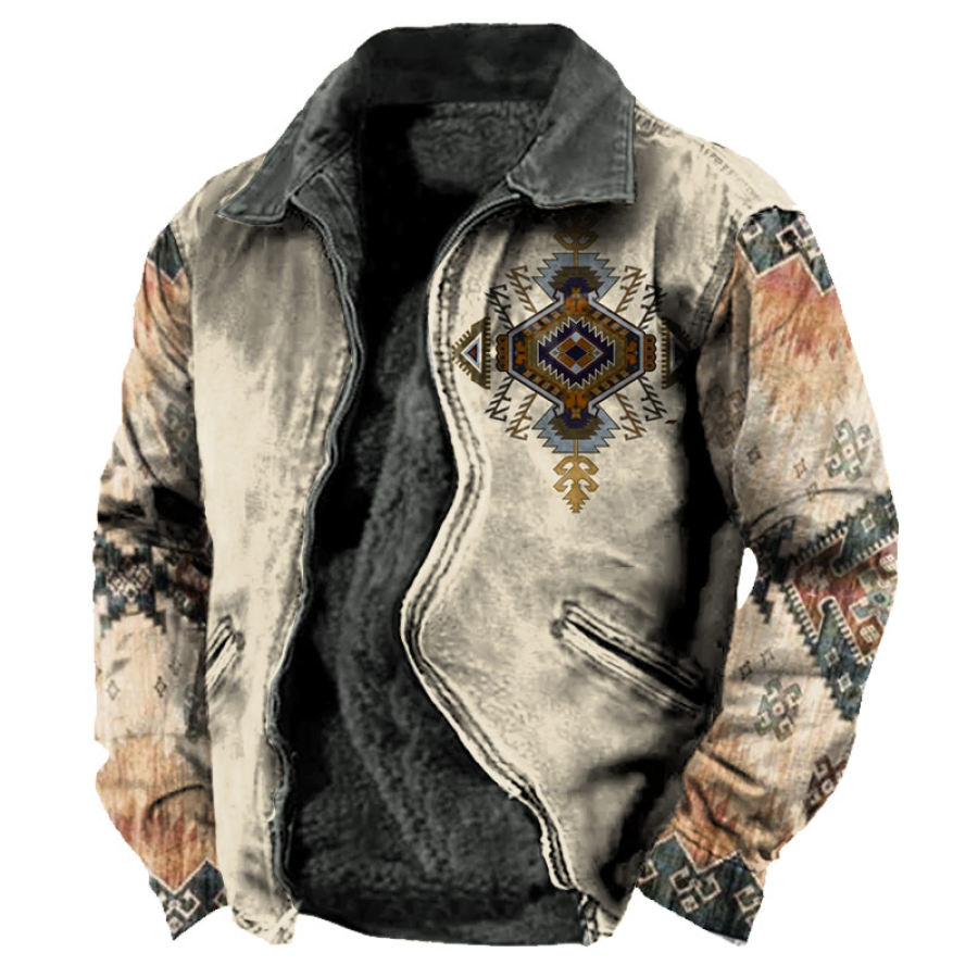 Giacca-camicia In Pile Da Uomo Con Stampa Etnica Retrò