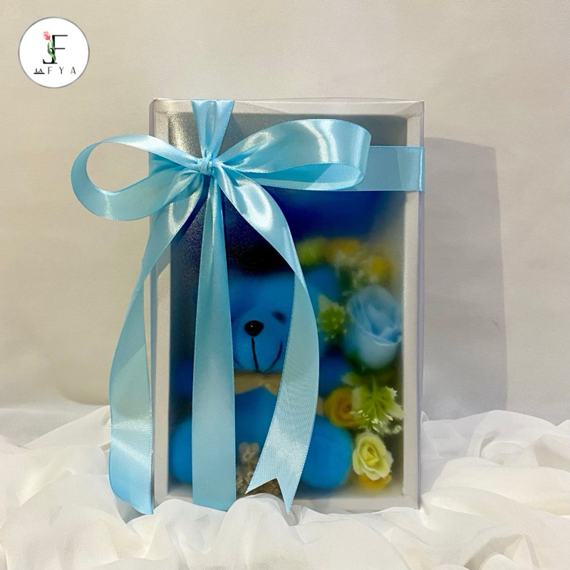 Gift Box Boneka Bunga Pita Biru