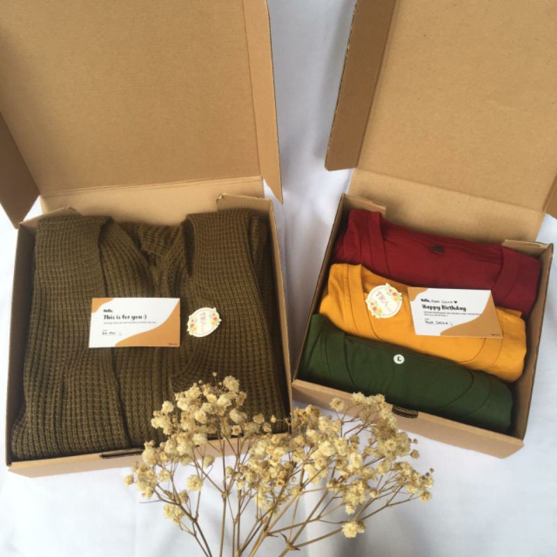 Gak pake ribet bungkus2 kado deh, kalian tinggal order di kami langsung kita packing se aesthetics ini dan pastinya berkesan banget buat orang yang kalian kasih