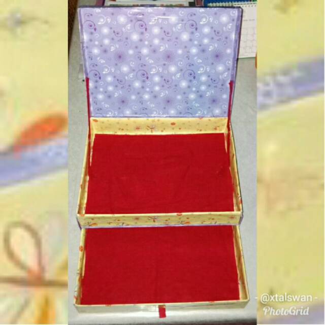 Kotak kado dua tingkat, dengan bentuk seperti laci.