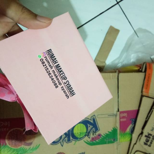 Box custom warna pink dengan divider di tengah. Untuk ukuran box sendiri adalah 10*9*3