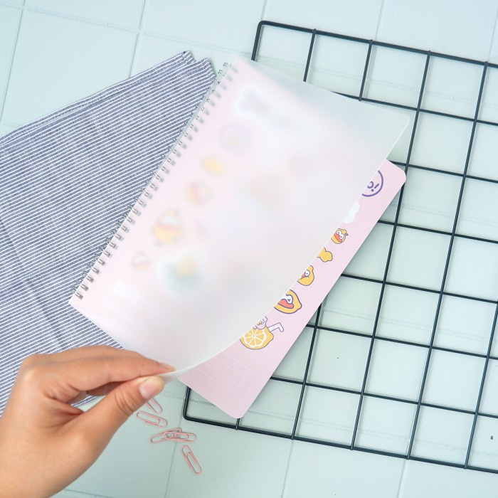 Setiap buku tulis seri Lemon Duck ini datang dengan stikernya masing-masing. Artinya, sembari kamu mencatat, kamu bisa memilih stiker yang kamu mau dari halaman depan atau belakang untuk ditempel menghiasi tulisanmu. Tidak hanya itu, tiap buku dilengkapi karet pengikat dan sampul luar berbahan plastik tebal agar bentuknya kokoh dan isinya terlindung dari basah dan debu.