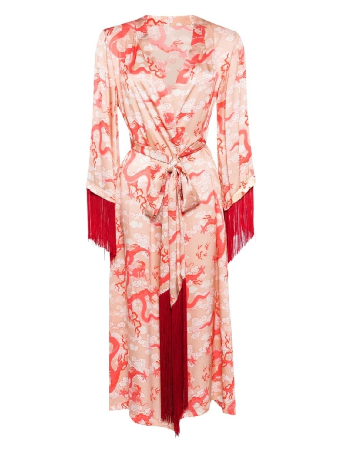 Gilda & Pearl шелковый халат Lili с бахромой, розовый